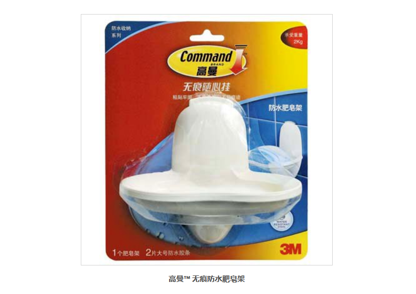 主要材质:胶,泡棉,塑料;产品规格:1个肥皂架,2片大号防水胶条;商品颜色:白色;承重量:2kg;安装方法:1.请选择防止肥皂架的位置,避开瓷砖缝隙(注意:肥皂架放置的位置下方应保留一定空间,以便日后拉下胶条),请清洁表面,待干2.撕开红色离型胶纸,3M箭头朝下,将胶条分开粘帖,胶条上缘对齐虚线粘帖于防水挂杆背座背面,用力按压使胶条完全紧贴于背座3.撕开黑色离型胶纸4.将肥皂架贴于墙面,均匀压紧10秒钟,重要:将肥皂架上盖沿墙面向上提起后取下,均匀按压挂钩背座30秒,使胶条完全附着于表面5如需使用在浴室等潮湿环境时,务必静置24小时,请确保在此期间内让背座淋水一次,若在其他干燥环境下,静置24小时后可直接使用,将肥皂架挂回背座,正常使用产品,取下方法:1.将肥皂架沿墙面向上提起轻扶挂钩背座,请勿正面用力按压背座2.请沿墙面缓慢垂直拉下胶条38CM,直至挂钩背座脱离(注意:请勿面向自己拉下胶条)