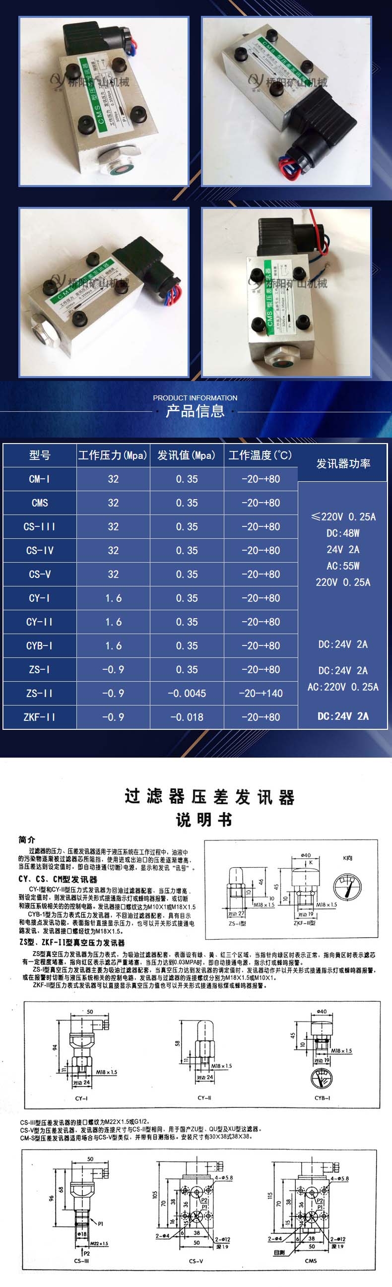 压差发讯器多种型号,主要有CMS,CS-V,CM-I,CS-IV,CZ-II,CS-III,CYB-I,ZKF-II,CY-II,YM-I,ZS-I,CM-I-F等。
