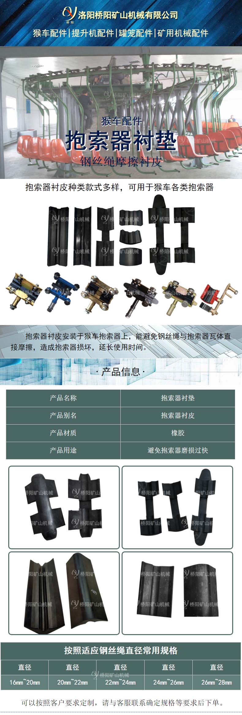 抱索器衬皮 猴车索道防滑绳衬垫