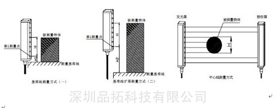 测量光幕光栅安装方式主要有三种:基准线测量方式,基准线扩展测量方式,中心线测量方式。