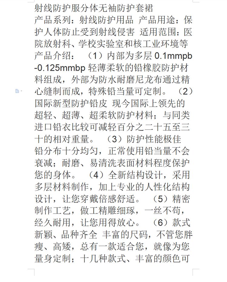 产品用途 | 保护人体防止受到射线侵害 | ||