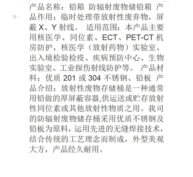 功能 | 临时处理带放射性废弃物,屏蔽X、Y射线。 | ||