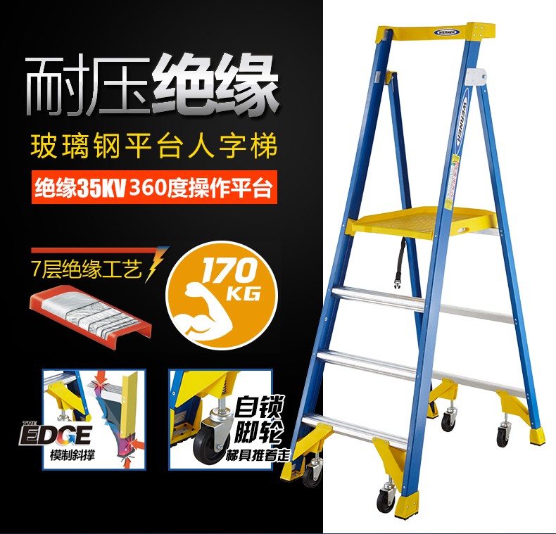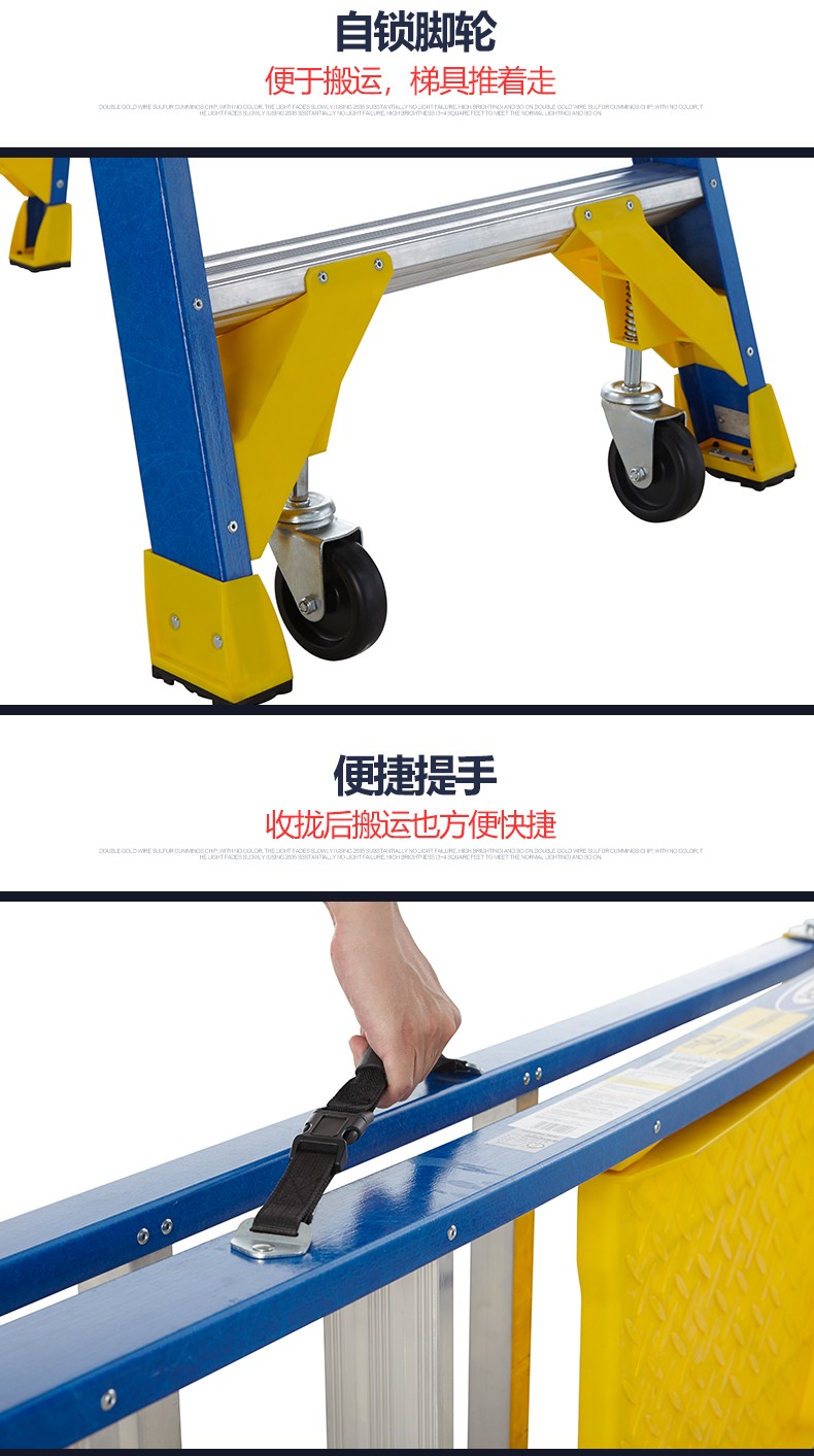 稳耐P170-10CNFG绝缘人字梯电工梯4.1米平台梯玻璃钢登高梯十步