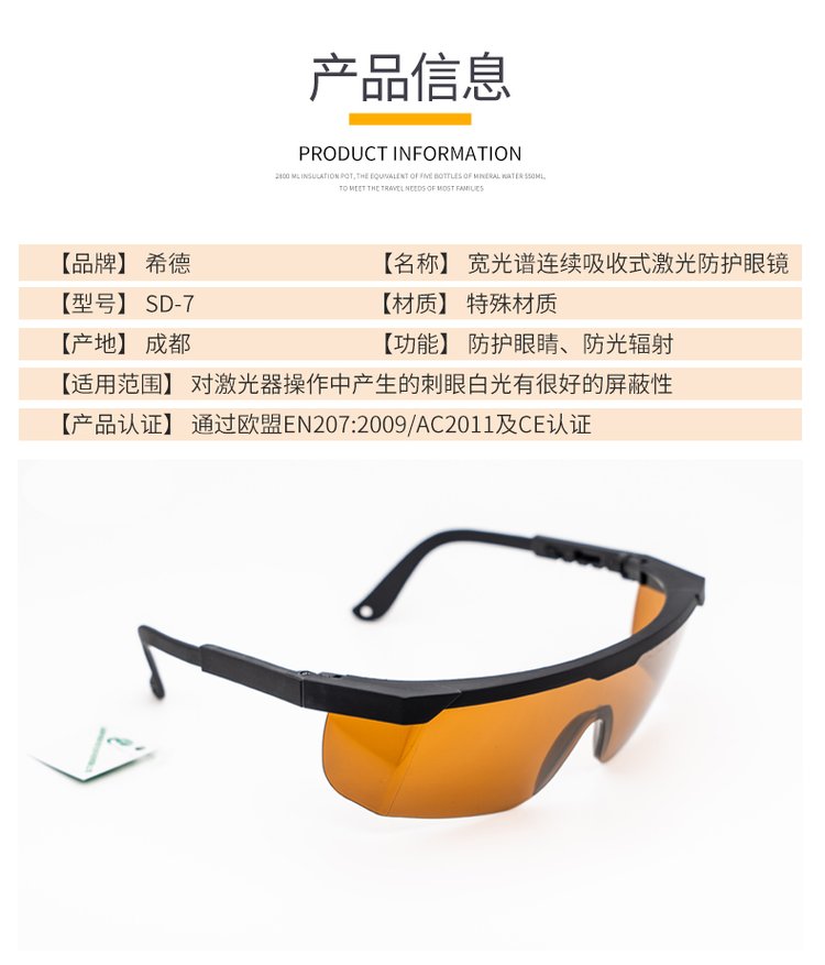 希德SD-7防护眼镜样式6防护波段190-540nm/800-1700nm护目镜 品牌 | 希德 | ||