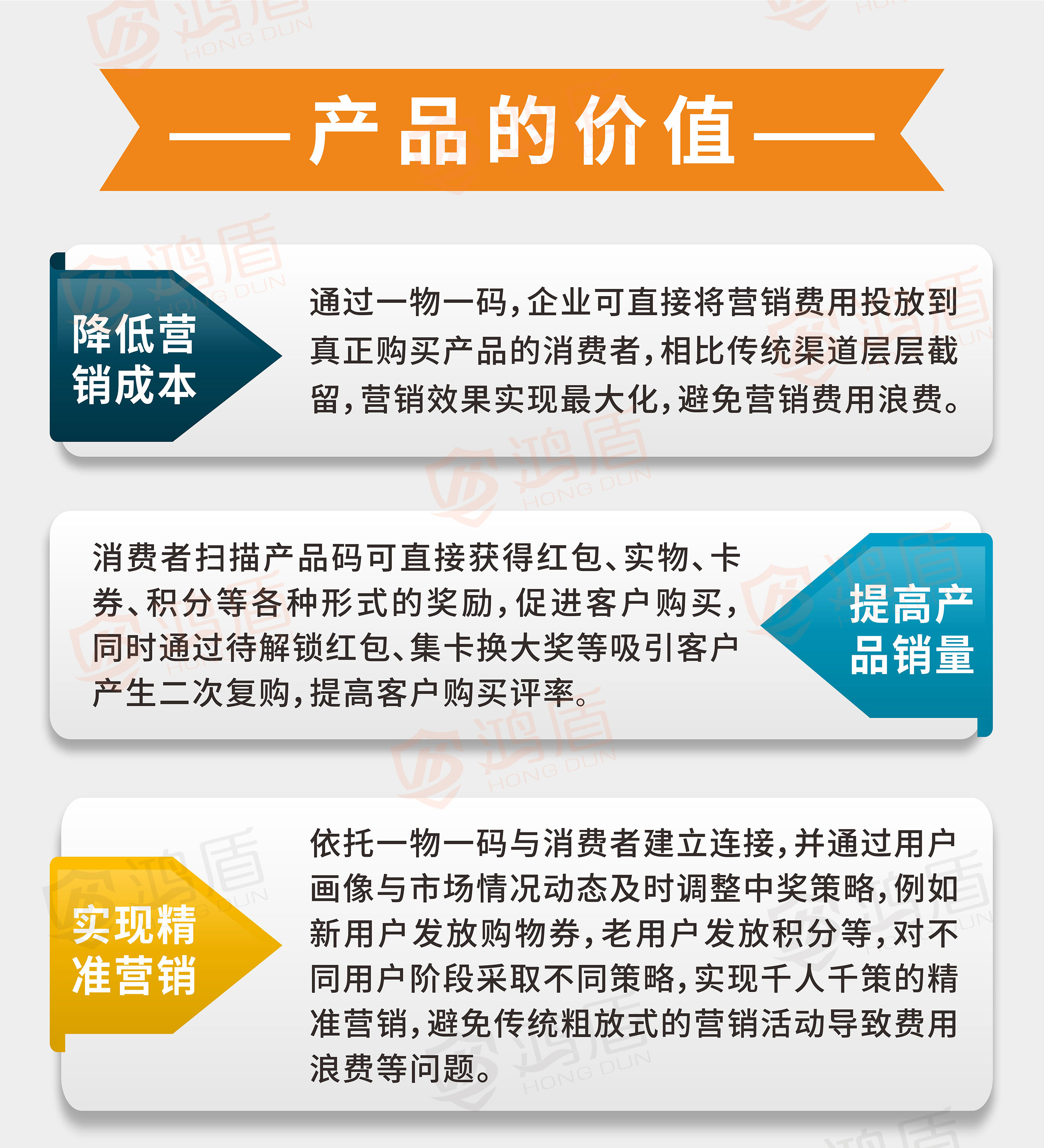 功能 | 防伪,溯源,红包营销,防窜货追溯,电子质保,其他定制功能 | ||