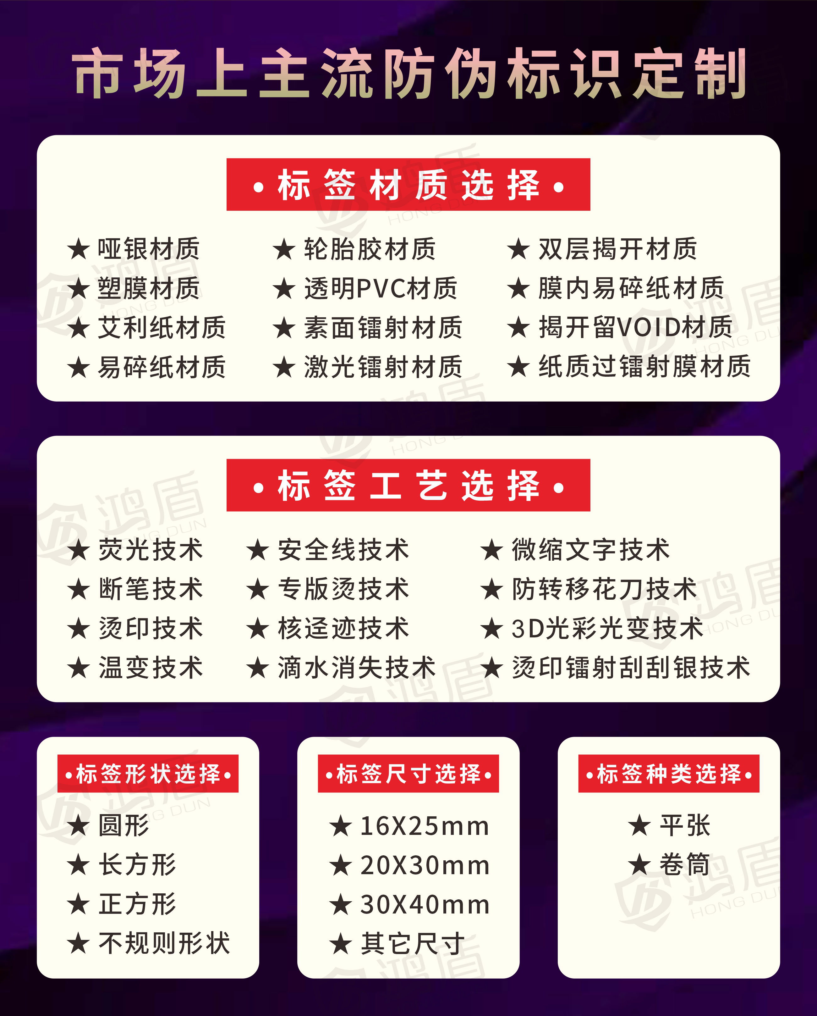 防伪方式 | 400电话,数码防伪,电码防伪,二维码防伪,其他防伪方式 | ||