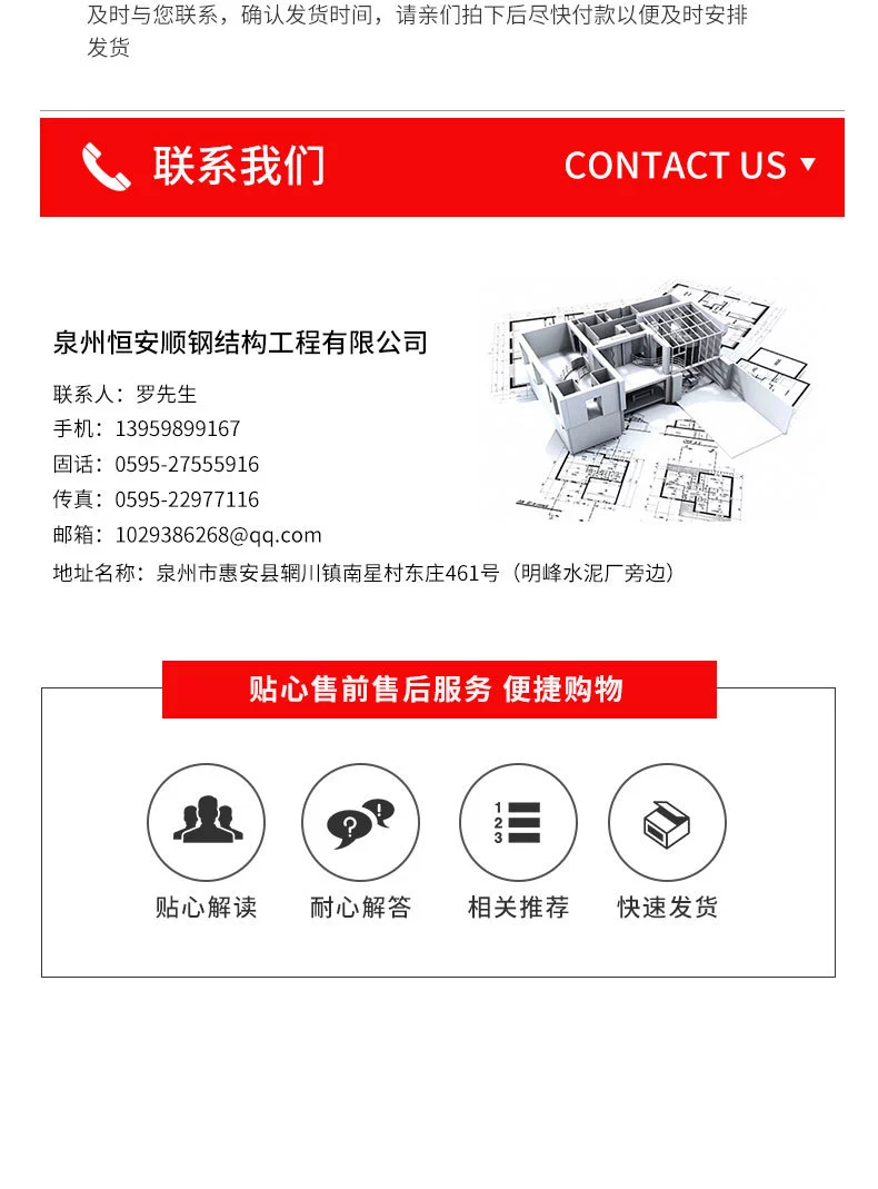 商铺名称:泉州恒安顺钢结构工程有限公司销售部