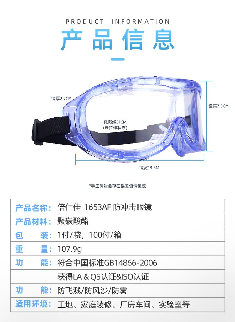 产品名称 | 倍仕佳1653AF防冲击眼镜 | ||