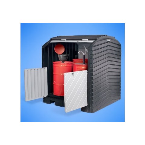 带有污水箱的低身量托盘可接住泄漏,滴漏及溢漏,且伸手可以桶顶与配件
