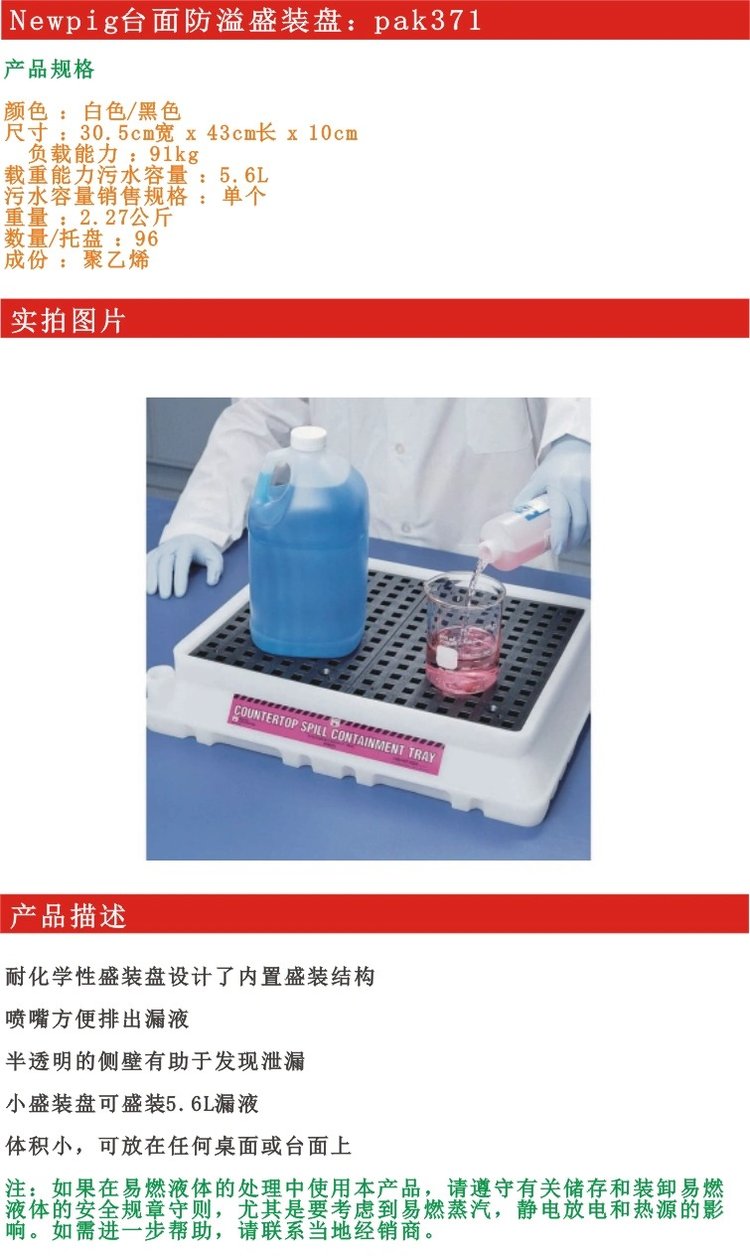 产品功能 | 耐化学性盛装盘 | ||