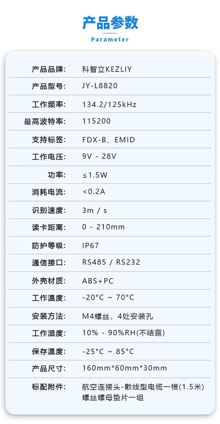 适用卡类 | RFID低频标签 | ||