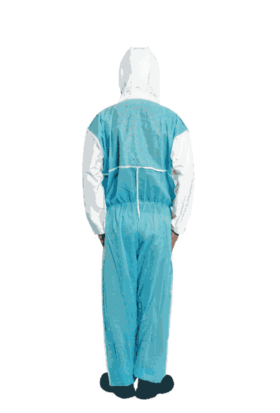 8. 前后采用不同材质,正面为透气膜,背部为SS无纺布,在保证防护能力的前提下增加了穿着舒适度。