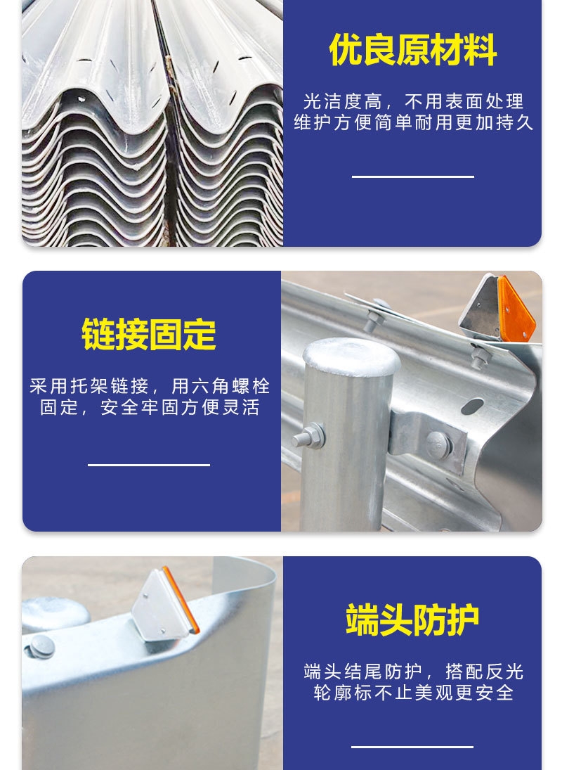 有的朋友也许还不太清楚波形护栏板是什么,就先给大家解释一下,波形护栏就是由波形护栏板和用来固定波形护栏板立柱所组成的,大家现在应该明白了吧。 波形护栏是国家上几年才从国外引进技术而应用于高速公路安全设施的。有了波形护栏之后就大大减少了高速公路的交通事故。