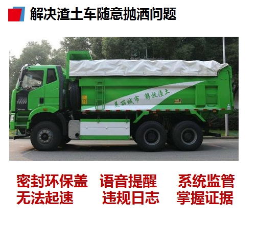 通过顶盖密闭来控制沿路抛洒,顶盖未密闭车辆限速限速20KM/H。并把信息上传至平台进行报警。减少烟尘,杜绝抛洒,保护生态环境。