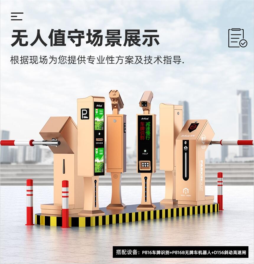 4.0.8秒开闸、无惧车流:闸杆45度方向运动,速度0.8秒-3秒可调,闸杆可达3米,满足车流量较大且有高度限制场所。