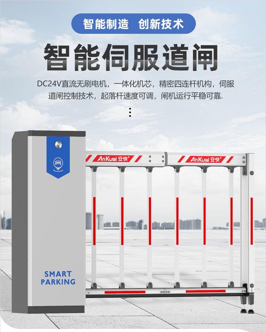 1.使用伺服道闸控制技术,起落杆速度可调,闸机运行平稳可靠。