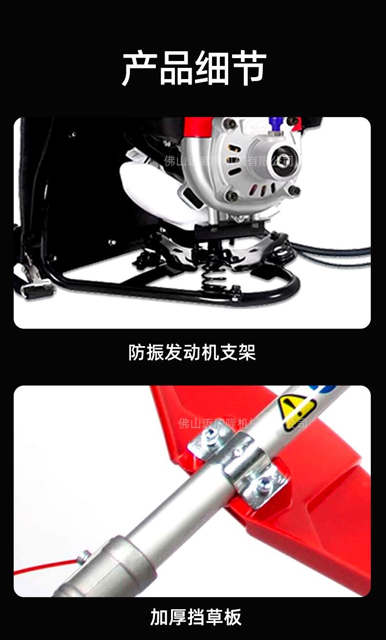 一机搞定多种场合,庭院除草,农作物收割,割稻,甘蔗地、大豆小麦收割,灌木丛切割开荒等,节能省油散热快,背负式采用海绵透气靠背,工作舒适,安全耐用透气不易疲劳,使用方法简单,轻松快捷。