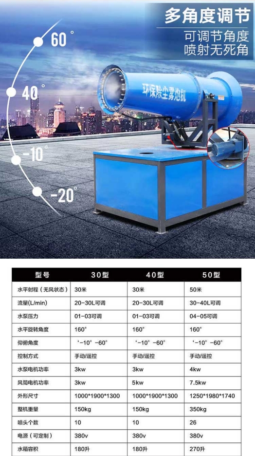 雾炮机被广泛应用于城市建筑工地、冶金钢铁厂、水泥厂、煤化企业等容易产生粉尘的场所,它可以有效抑制粉尘污染,从而达到净化空气的作用。降尘雾炮机在建筑工地进行喷雾作业时,耗水量低,喷洒面积大,除尘效果好,是建设绿色工程的可靠保障。此外,在炎热的夏季,降尘雾炮机还可以对工地环境起到保湿降温的作用。