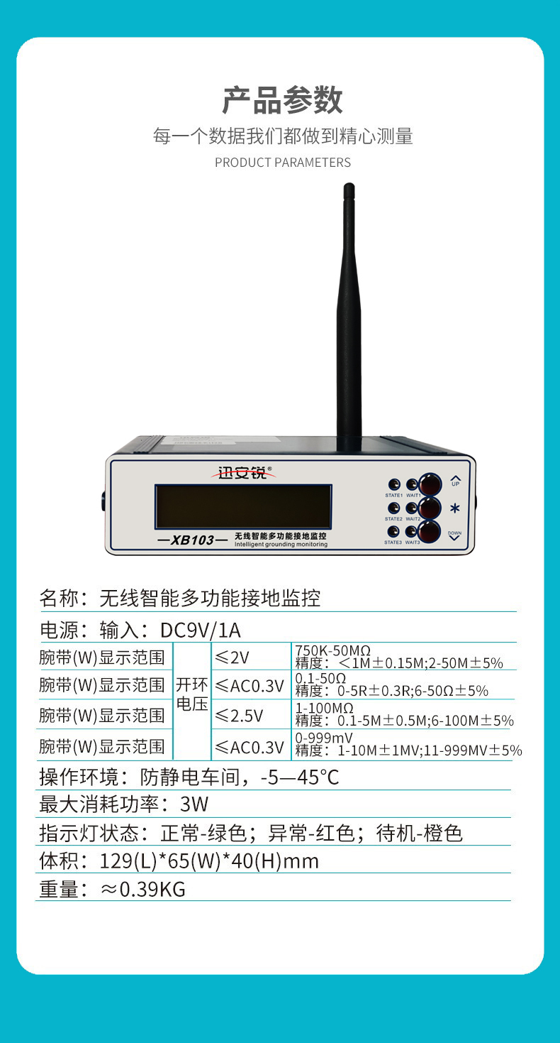 ESD智能监控规划管理系统无线智能监控器XB103双回路智能手腕带