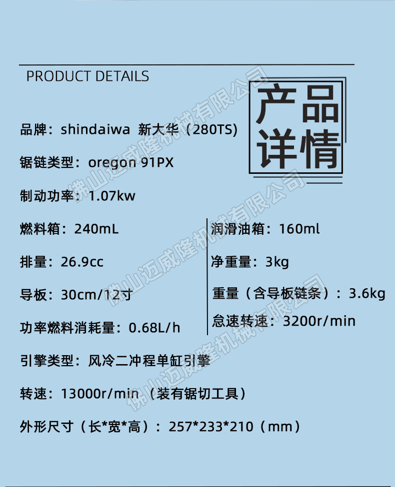重量(含导板链条): 3.6kg