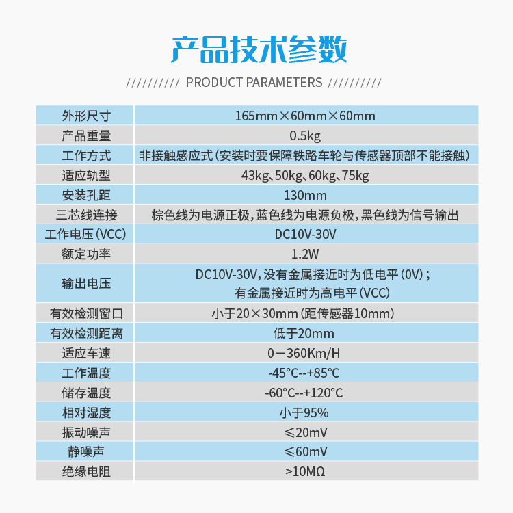 本设备在防护上,增加防雷功能,线接错保护功能。本设备安装在铁路轨道上,用来检测铁路车轮是否通过。