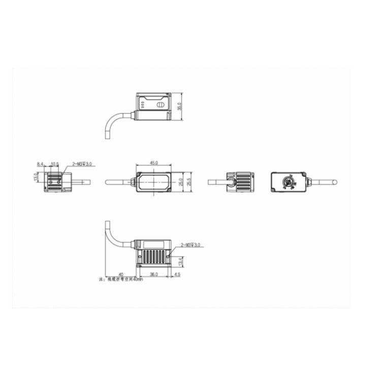 产品尺寸 45.0mm × 35.0mm × 25.5mm(不含线缆)