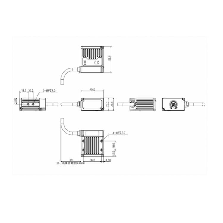产品尺寸 45.0mm × 52.0mm × 25.5mm(不含线缆)