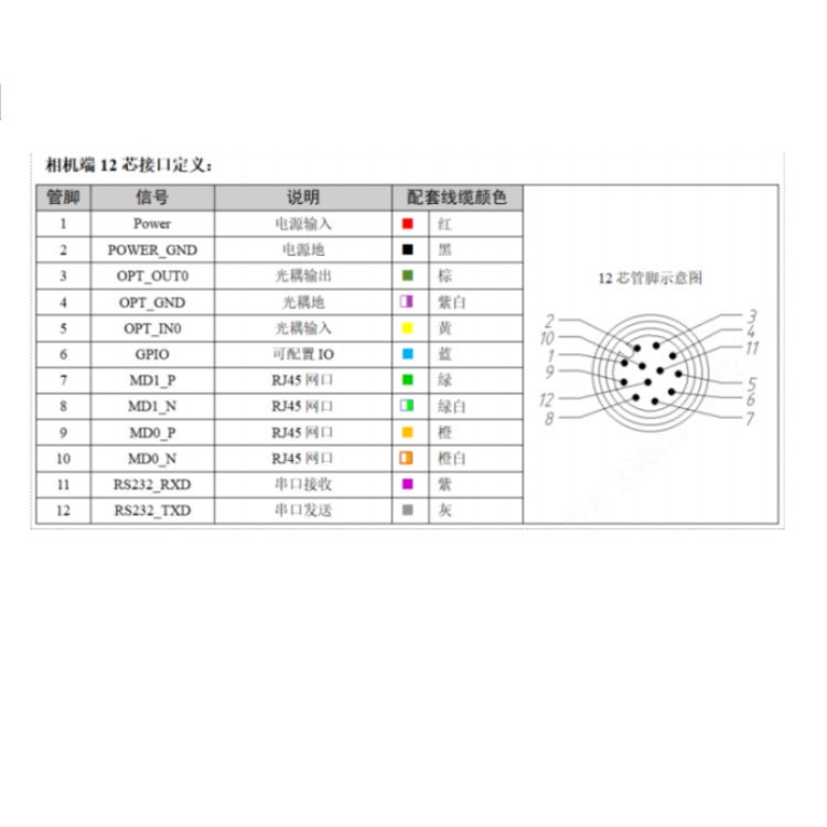 SS3016PCG-07H-WGF01 华睿科技SS3000系列155万像素7mm镜头全局快门60fps百兆工业以太网接口白光彩色智能相机 接口定义: