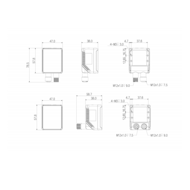 SS4013MG-07M-WGN01 华睿科技SS4000系列130万像素7mm镜头全局快门60fps内置丰富算法工具百兆以太网口白光智能相机 结构尺寸图(mm):
