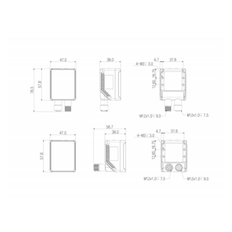 SS4013CG-07M-WGN01 华睿科技SS4000系列130万像素7mm镜头全局快门60fps支持算法工具百兆工业以太网接口彩色智能相机 结构尺寸图(mm):