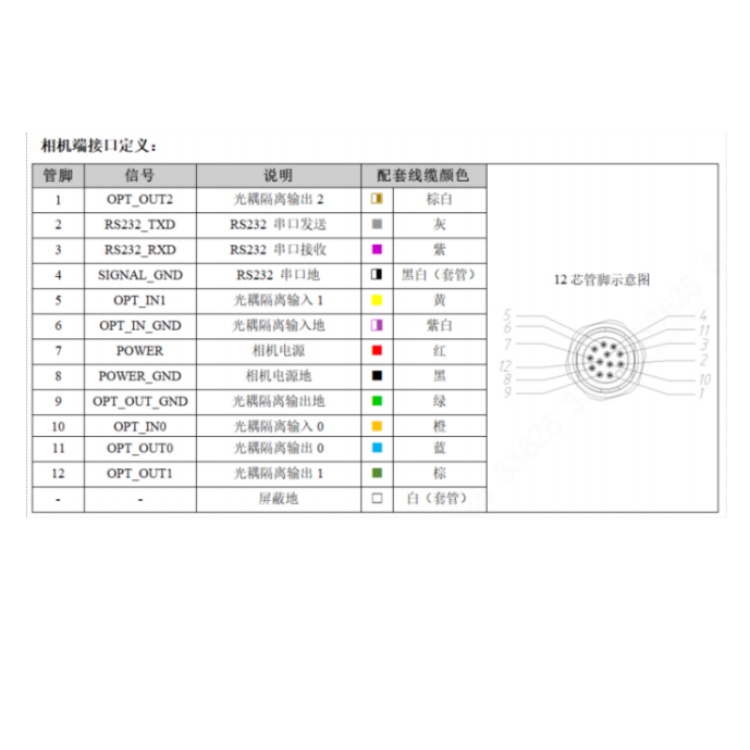 SS5050CG-12M-WGG01 华睿科技SS5000系列424万像素12mm镜头全局快门45fps内置丰富算法工具千兆工业以太网接口白光彩色智能相机 接口定义: