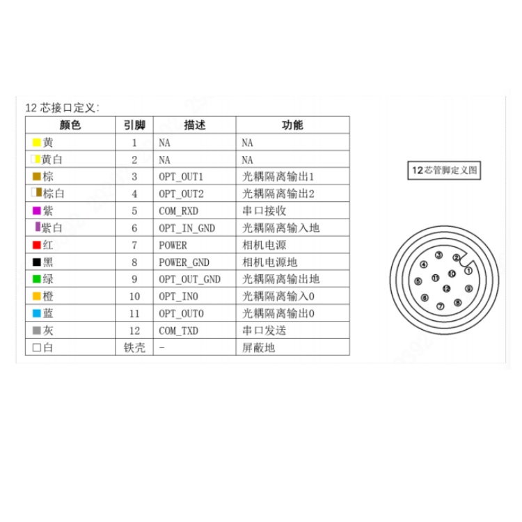 DH-MV-SI5A20MG000 华睿科技X86系列1200万像素1/1.7英寸CMOS卷帘快门20fps内置MVviewer工业相机客户端千兆工业以太网接口黑白智能相机 接口定义: