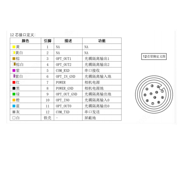 DH-MV-SI5B00MG000 华睿科技X86系列2000万像素1英寸CMOS全局快门21fps内置MVviewer工业相机客户端千兆工业以太网接口黑白智能相机 接口定义: