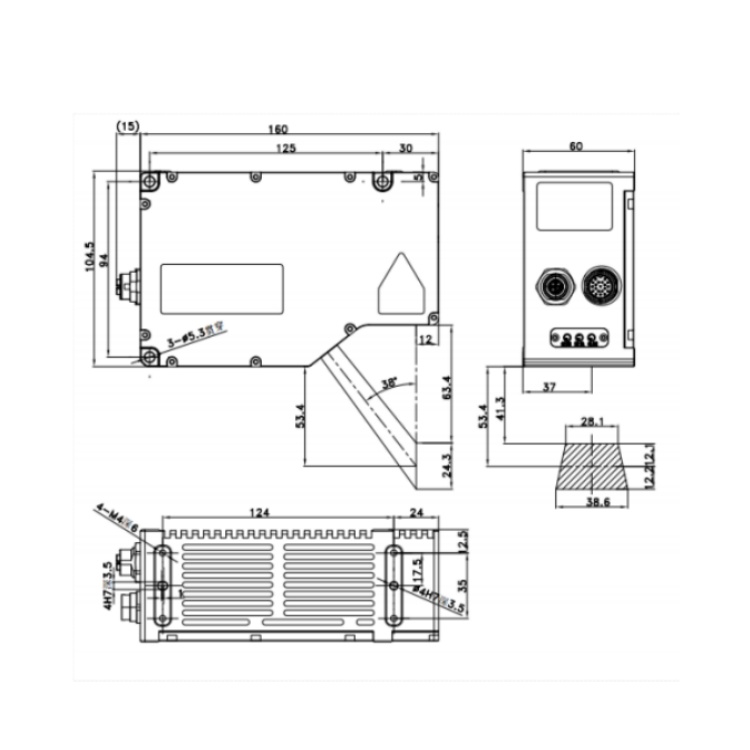 DL5040B 华睿科技高精度三维测量千兆以太网口传输内嵌航空插头3D激光轮廓传感器 3D检测相机 结构尺寸图(mm):