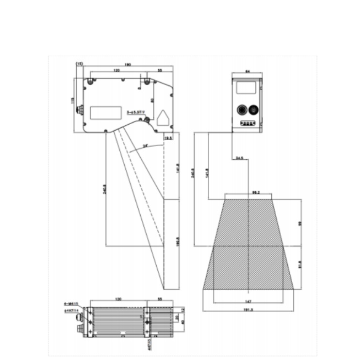 DL5140B 华睿科技千兆以太网口传输高精度三维测量3D激光轮廓传感器 3D工业检测相机 结构尺寸图(mm):
