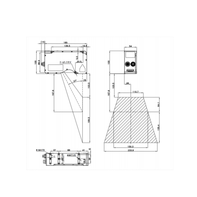 DL3100B 华睿科技配套视觉软件平台快速部署千兆网口内嵌航空插头高精度三维测量3D激光轮廓传感器 3D检测工业相机 结构尺寸图(mm):