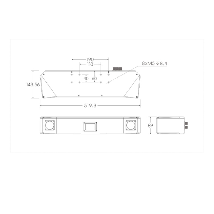 DLS2000R-H 华睿科技检测、定位、机器人引导配套视觉软件平台双目结构光相机 3D立体工业相机 结构尺寸图(mm):