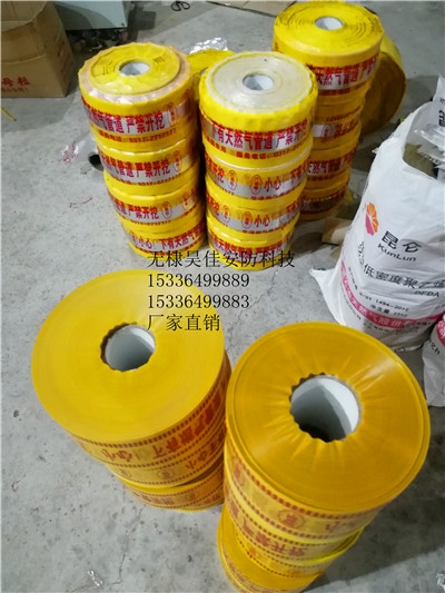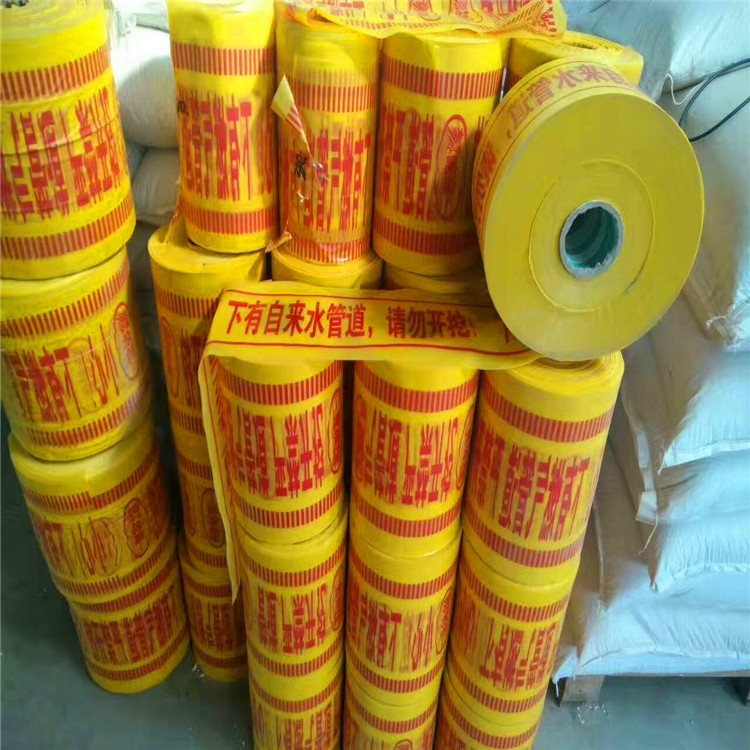 警示带有两种:一种为普通警示带;另一种为夹金属可探测警示带又称示踪带,(带不锈钢金属警示带), 由于随着社会经济不断发展,地下管网建设中越来越多地采用PE、PPR、PVC等塑料管,探测仪器根本无法探测到管线走向,夹金属警示带可以解决管线无法探测这一难题,且该产品采用高强度、耐老化的高分子材料,以PE、PP、OPP为主要原料,经防腐处理加工而成,耐腐蚀性能好,色泽鲜艳、醒目,长期铺设在地下50年不腐蚀,不褪色,符合长期埋地质量不变要求。