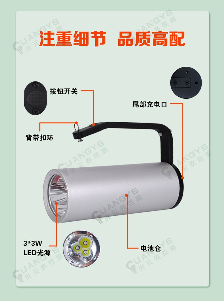 YJ1201固态手提式防爆探照灯紫光同款手提便携LED工作灯