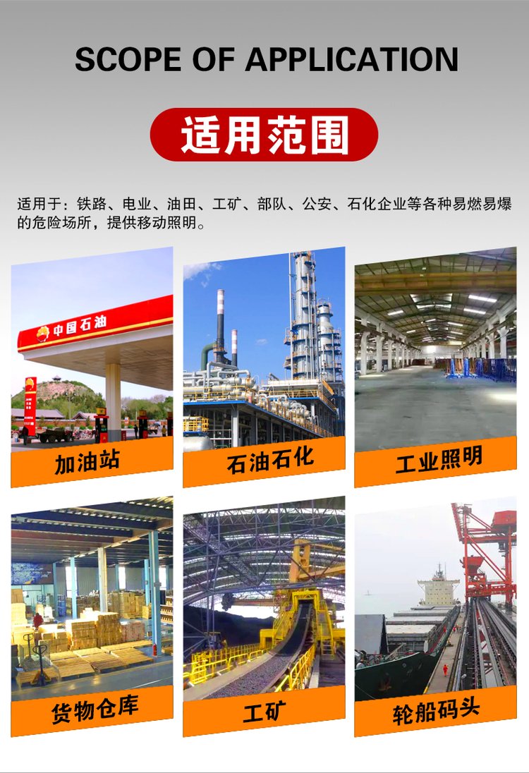 适用环境 | 电力,工业,化工应急,铁路照明,户外帐篷照明 | ||