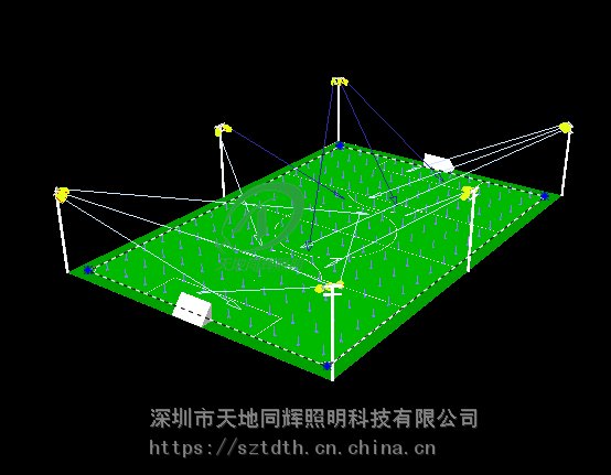 ????场地装灯位置可安装于看台顶棚边缘、二种方式为装与立杆上方,立杆安装于球场四周;又根据不同球场对照明要求不同来确定布灯数量和功率大小;下面分别列出一般足球场高杆布灯方式: