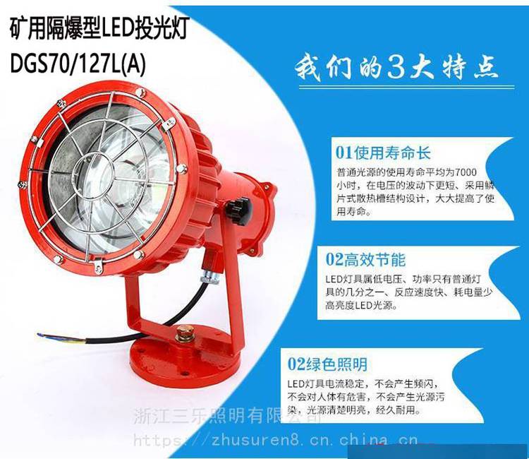 浙江三乐矿用隔爆型LED大范围投光灯DGS70/127L(A) 品牌 | 三乐照明 | ||