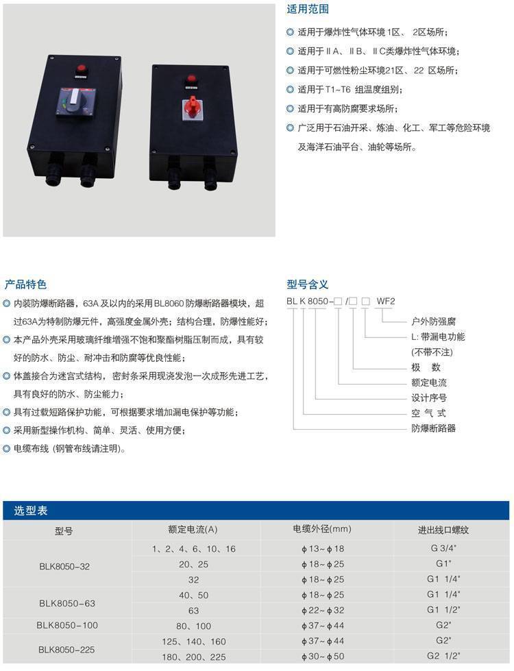 3 应用于石油、化工、海上平台 码头等危险场所,在交流50Hz、电压至380V的线路中作控制之用。