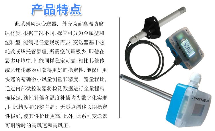 本公司系列风速变送器是准确通风控制领域则量风速的理想选择,主要应用于商业楼宇和节能建筑的BA系统中 它以创新的热膜风速计为工作原理,所使用的薄膜敏感元件在低风速时仍保持高精度,这与利用一般温度传感器技术或热敏电阻技术的传统风速计相比,具有更加明显的技术优势。而且薄膜敏感元件对灰尘和污垢的敏感度相对较低,这样测量就更加可 靠,且维护成本更低,耗电少,适用范围广。