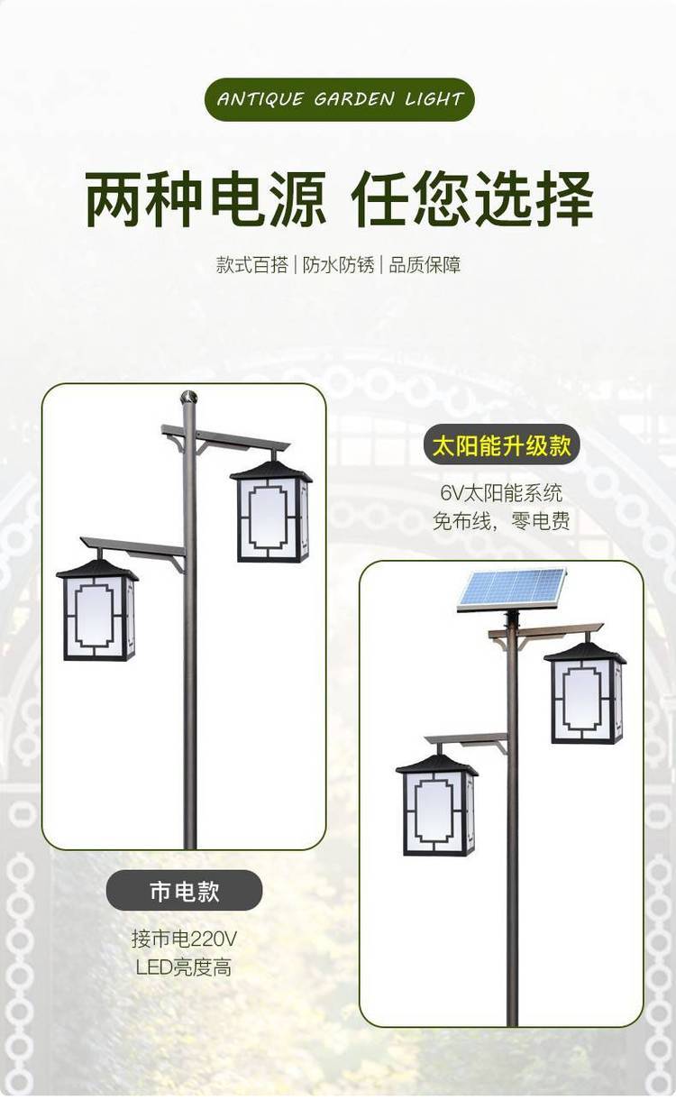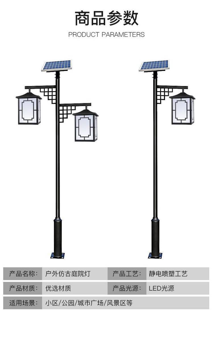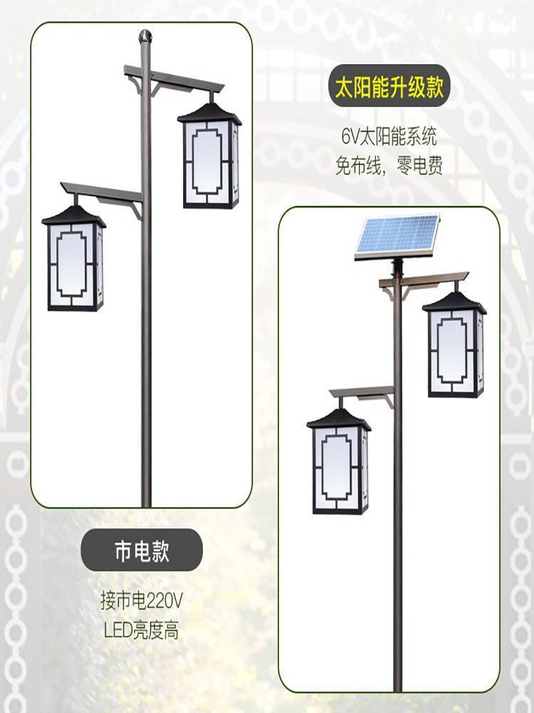 仿古中式太阳能路灯3-6米景观灯户外防水LED庭院灯复古灯笼灯
