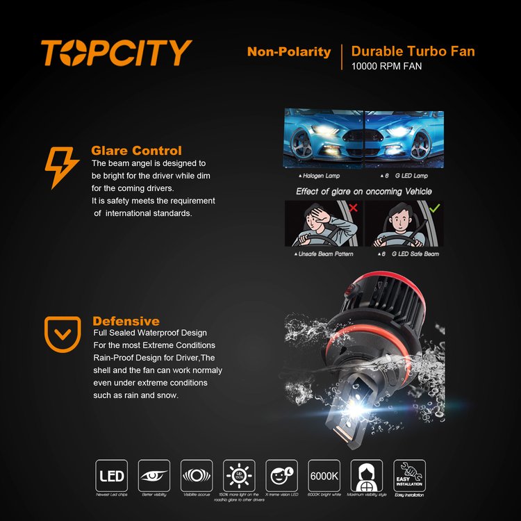 供应车灯LED汽车灯泡 9004/9007远近光切线前大灯直插式风扇头灯 品牌 | TOPCITY/光亮一号 | ||