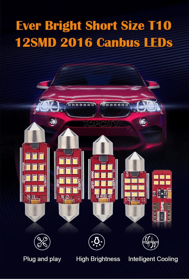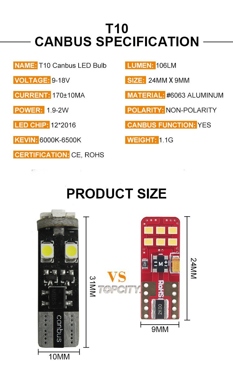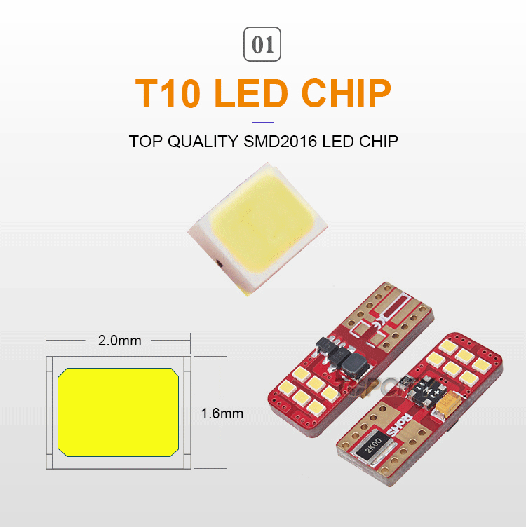 跨境货源LED汽车灯泡T1012SMD2016增加示宽灯日行灯仪表灯