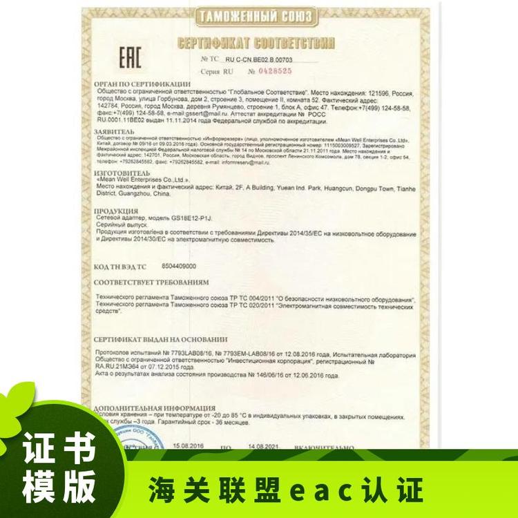 全国各种产品压力设备出口俄罗斯海关联盟eac认证证书快速办理