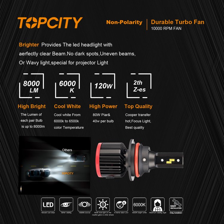 供应车灯LED汽车灯泡 9004/9007远近光切线前大灯直插式风扇头灯 品牌 | TOPCITY/光亮一号 | ||
