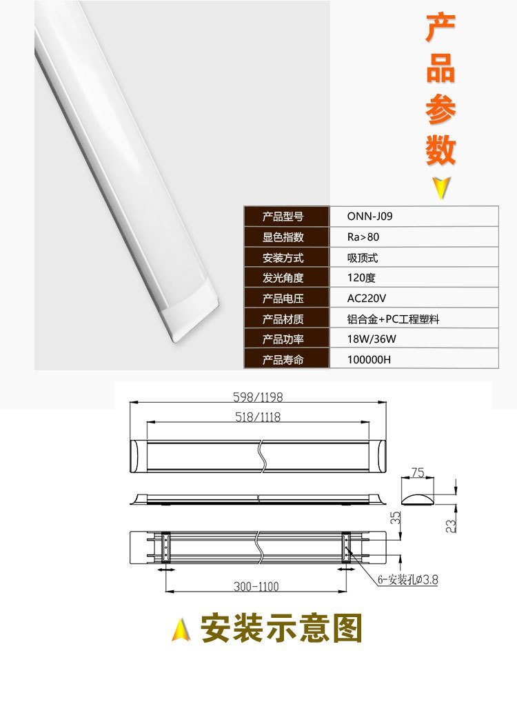 欧恩LED洁净灯防尘IP50 0.6/1.2米 18/36W 厂房 仓库 办公室用灯 品牌 | 欧恩 | ||